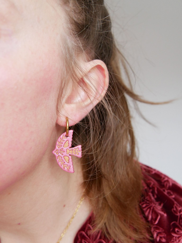 Toutes les pampilles sont fabriquées une à une à la main en pâte polymère. 2 couches de vernis sont appliquées en finition.