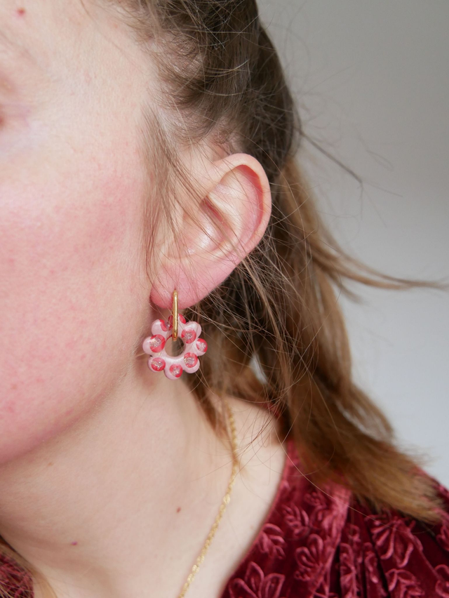 Toutes les pampilles sont fabriquées une à une à la main en pâte polymère. 2 couches de vernis sont appliquées en finition.